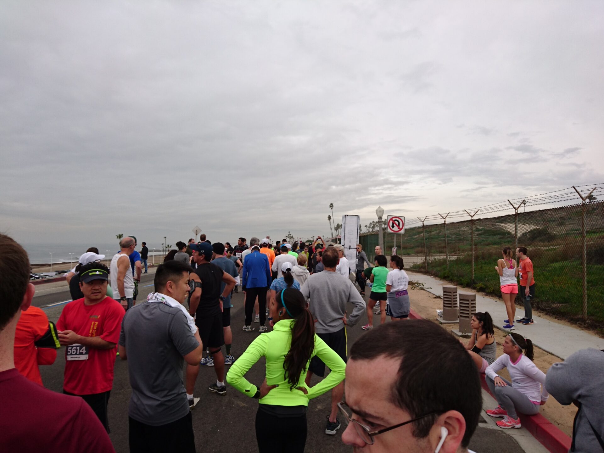 The 10K course was two laps on a flat "out and back" course along Dockweiler Beach followed by a final finish down to the beach parking lot.